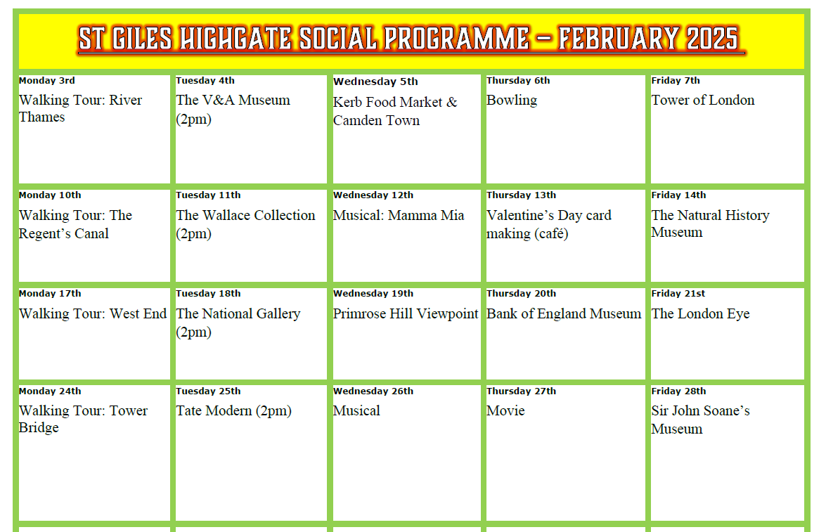 ![]() 2025年2月のアクティビティカレンダーです。 あくまで参考としてご覧ください。 |