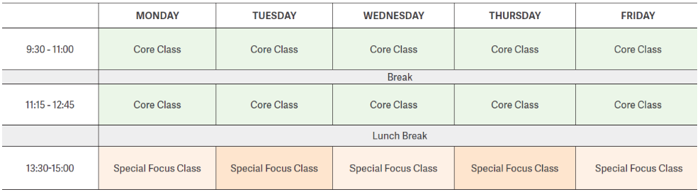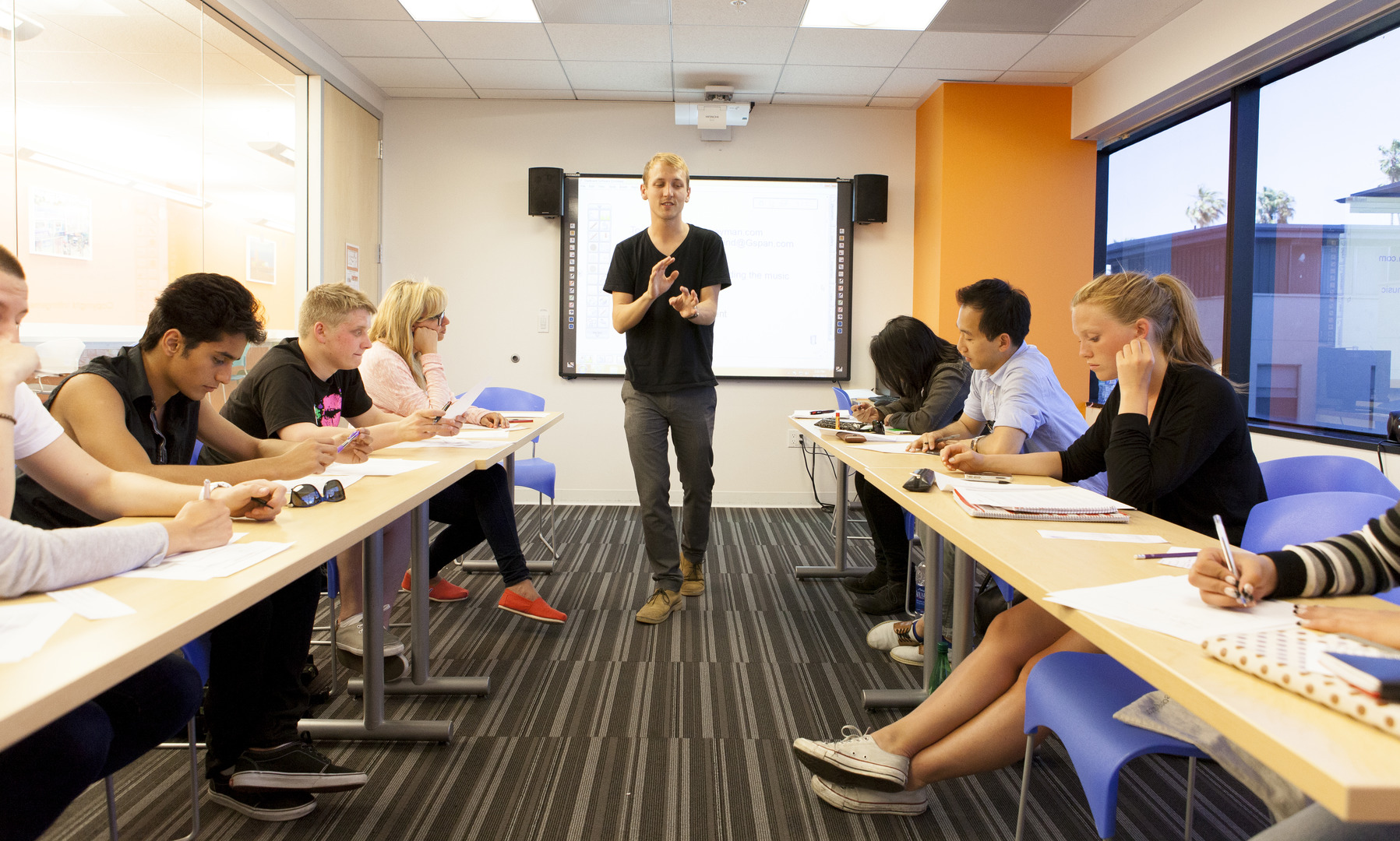 ![]() *週20レッスン:Core Classを毎日受講 *週30レッスン:Core ClassとSpecial Focus Classを毎日受講 (注意:週30レッスンの受講の場合、アメリカ学生ビザF1の申請が必要です) *繁忙期は午前と午後を交互にご受講いただくダブルバンクスケジュールとなる可能性がございます。 他国からの留学生と机を並べての授業。ただし、クラス分けテスト結果によってクラスに日本人が集中したり、日本人のみのクラスとなることがあります。 |